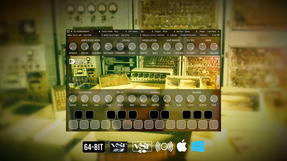 Thales Model I features the tones generated by the early sixties computers. The sounds have been sourced in public domain films, which means that they are not clean: tape noises and background hisses are part of the sound of this very special rompler. Because of this, Thales Model I's sound is reminiscent of the Mellotron and other tape-based keyboards of the sixties.