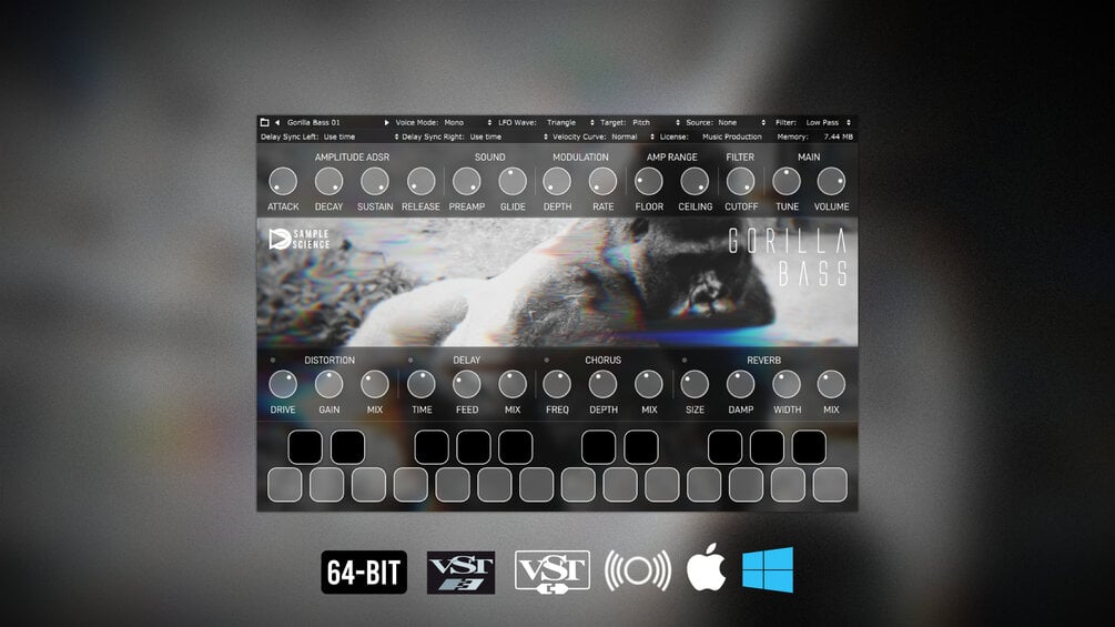 Gorilla Bass is a plugin to create heavy Reese basslines for drum & bass, jungle, 2-step, and garage music productions. Each Reese Bass has been created from scratch, mastered, and heavily processed to perfection.