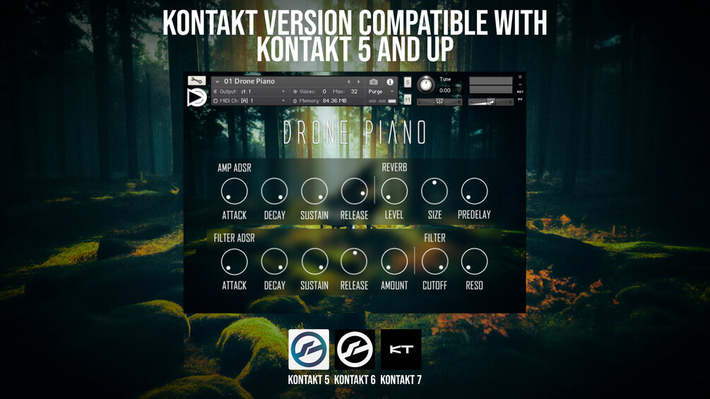 Drone Piano offers three distinct variations of the same piano sound for a diverse sonic experience. The first variation features seamless drone loops crafted from the tail end of the piano samples for a continuous, ambient sound. The second variation is the looped piano, where the decaying sound is looped seamlessly, creating subtle and sustained tones. The third variation presents the original piano sound in its pure form, complete with its natural decay.