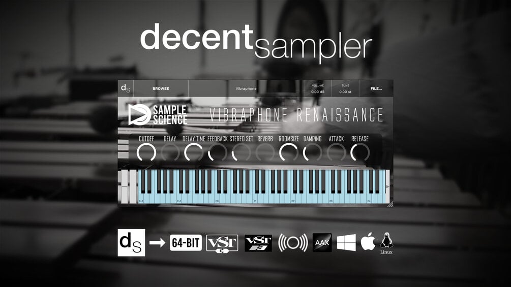 I've been given a highly damaged and noisy vibraphone recording by a fellow sound developer. Using the power of spectral repair, I manually fixed each note to its original state giving this vibraphone sample set a rebirth, hence its name Vibraphone Renaissance.
