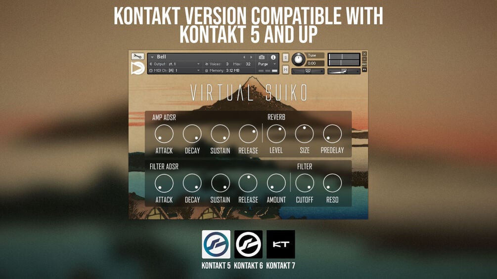 Virtual Suiko has all the original 8 sounds of the instrument plus 4 effects, a multi-LFO, highpass/lowpass filter and more!